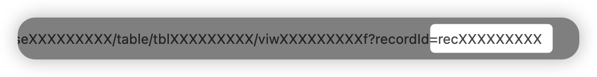 展开记录编辑卡片,复制 URL 上 recordId= 后方以 rec 开头的字符串, 示例:recXXXXXXXXXX