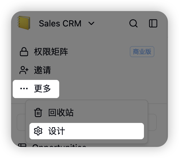 方法 1: 点击表格左上角更多 中的 设计 按钮,进入设计界面,查看所有字段的 ID