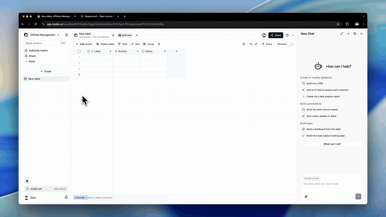 AI数据库Agent带来6大创新,彻底改变你用数据的方式:- 对话生成数据库:再也不用为线索混乱发愁,Teable能自动识别情感、帮你写好CRM回复。